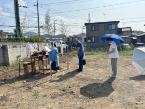 今日は、暑い中 足利市宮北町のM 様邸の地鎮祭を行いました。 このような雰囲気ではじまりました。 暑いです。 四方払いを行い~「払えたまえ~清めたまえ~」 鍬入れ […]