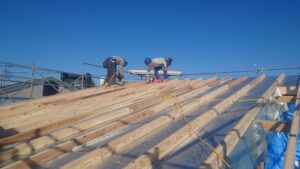大屋根の野地が終わりました。