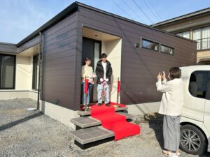 今日は、良いお天気の中引き渡し式を迎えることができました。 まずは、恒例になっています。テープカットから~ 切る前の写真(カメラマン奈保子も一緒に)です。 玄関から入りますとリビングの行くドアのほかにキッチンに行け […]