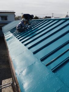 今日は、風はなかったですが寒い一日でした。 今日は、金屋仲町のI様アパートの屋根の塗り工事の報告をします。 初日に洗浄して~2日目に下塗りが終わった写真です。 まずは、ローラーができない細かい刷毛で塗る部分から仕 […]