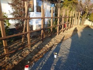 風の強い中、ウッドフェンスはじまりました。