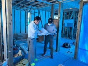 今日は、来週から入社する新人スタッフえと午前中現場まわりを行いました。 今日 はじめの現場は、植上町のS様邸です。 外壁も完成して、外部は、樋と足場完成を待つばかりです。(^^)/ 「ひろくん」棟梁と話をし […]