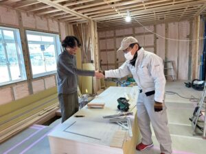 今日は、足利市宮北町のS様邸の建て方を行いました。 朝早くから レッカー車待機していました。材木屋さんも早いですね S様には、早くから現場に脚を運んでもらい「お清め」をして頂きました。 S様寒い中ありがとうござい […]