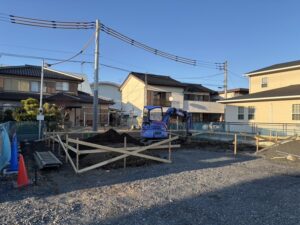 今日は、風の強い一日でした。 植下モデル着工しました。