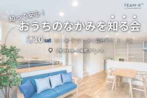 2025年5月10日(土)に1日限定で商品説明会を開催します! ご予約なしで完全無料でご参加いただけます。 team-K標準仕様を中心に沢山の商品をご案内いたします! その他にも資金相談・土地相談ブースもご […]