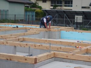 今日も暑い一日でした。各地で雷雨になったようですが、現状現場には、降られることがなく助かりました。 植上町のK様邸です。 今日の午後は、土台の検査を行いました。 いよいよ明日は、断熱入れ~床合板張りを行います。 最 […]