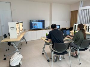 今日は、座談会を行いました。 (今日もスキップモデル温度計41℃超えです)