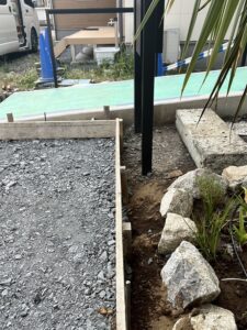今日も暑くなりました。昨日より4℃低い気温と言っても暑いですね~ 今日は、植下モデルの外構工事に朝にうち立ち合いました。 玄関ポーチのスロープと、塀の間の土間工事の段取りをしています 植栽の手前も人工芝を敷く予定です […]