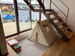 今日は、最高気温32℃くらいでしたの楽に感じました。 今日は、植下モデルの小物の設置を行いました。 シューズクローゼットには、スリッパ、ハンガー キッチン裏の収納かご! レンジと、ポット! 子供の遊び […]