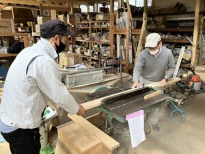 今日もまあまあ良いお天気でした。 今日は、棚の受け残を作りたいと、「正也ン」「アッキー」から相談を受けて 風間工務店作業場へ脚を運びました。 材料を割いているところです。 正也ンが俺にもやらせてほしいということ […]
