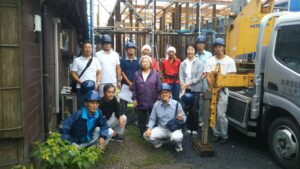 今日は、午前中小雨の中、高砂町のK様の上棟を行いました。 まずは、一番にきよめをしてもらい~ 全員挨拶を行います。 挨拶終了後は、記念写真! 担当棟梁は、「バッチジー親方」「かっちゃん棟梁」です。 安全第一でいよい […]