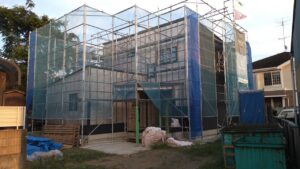 こちらは、植下町のY様邸です。昨日の夕方、気密測定を行いました。