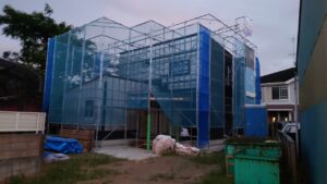 植下町のY様邸です。 外壁も半分くらい張り終えた感じです。