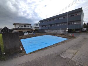 こちらは、若松町のO様邸です。明日地鎮祭なのでシートの準備をしてきています。