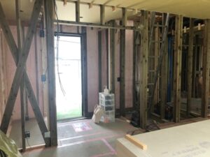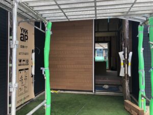 この部分は、玄関ですがいよいよ来週足場足場解体になります。