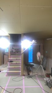 こちらは、大祝町のS様邸です。階段もできもう少しのところまできました。「さかな君」棟梁頑張っています。