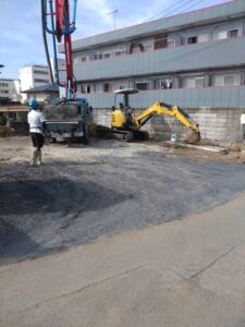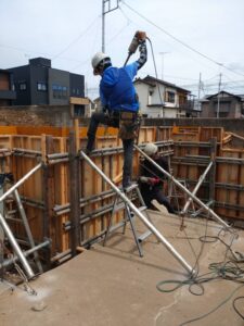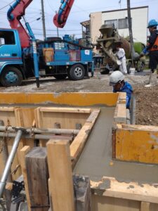 こんな感じでコンクリートを流したあと、バイブレーターでコンクリートのエアーを抜きます。