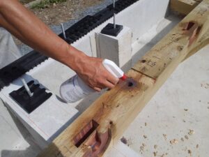 ハウスガードですので、加工部分は、専用防蟻スプレーで塗布します。