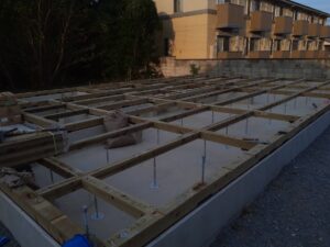 こちらは、栃木市のO様邸です。昨日土台敷を行いました。