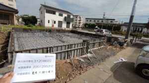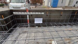 かぶり厚さOK! 見事合格です!おめでとうございます。(^^)/ 今日の午前中無事ベースコンクリート打ちが終わり来週いよいよ上棟になります。