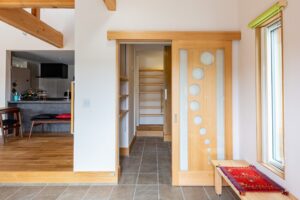 南土間から玄関の土間につながるところには、オリジナルドアがあります。