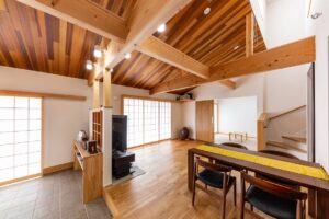 リビングダイニング部分は、木をふんだんに使っているイメージで