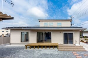 南から見ました外観です。デッキもできいい感じに仕上がりました。