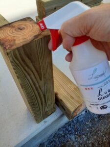 今日は、植下町のY様邸のデッキ工事を行いました。小口には、シロアリ防蟻を噴霧!