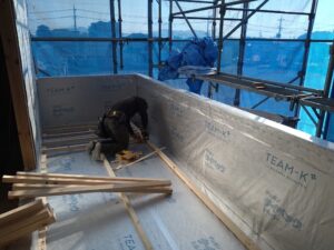 サッシも搬入され段々と家らしくなっていきます。楽しみですね(^^♪