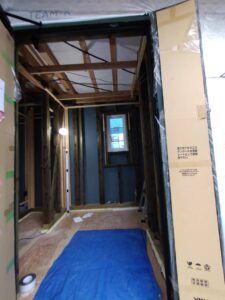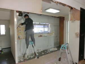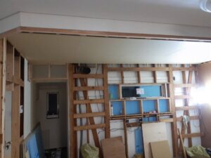壁まで解体して~天井を貼り~壁を貼る段取りをしています。