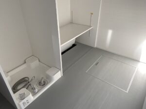 床下エアコン で冬は、暖房します。 脱衣室からみた隙間は、体感により調整していく考えです。
