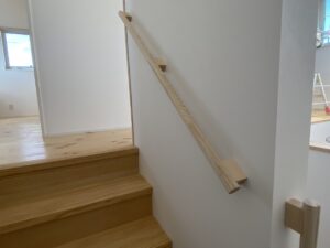 階段手摺は、手作りの手摺です。腕のよい大工ならではの仕事ですね(てまえみそになりまが( ゚Д゚))