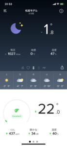 西棟の「松尾モデル」のリビングの温度です。 現在外気温1.8℃ 室内22℃キープしています。