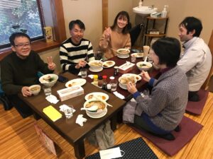 「くにや」のラーメンを~偶然席が空いていましたラッキー! スタッフ二人は、偶然オフィスにいて~運がいいね~(^^)/