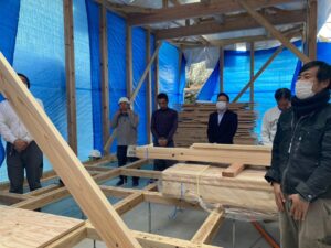 N様上棟おめでとうございます。大変ご馳走になりました。今後、現場が進むのを楽しみにしています。
