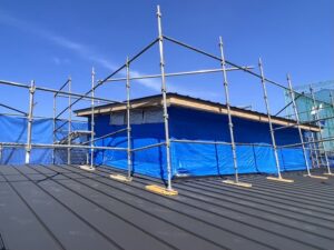 1階の屋根が大きい場合は、屋根工事の後から足場を掛ける場合もあります。