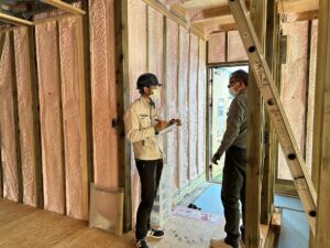 エアコンの工事屋さんと現場打合せを行いました。隠ぺい配管が一か所あるので現場での確認をしてきました。
