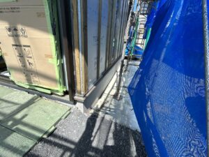 今日は、外壁工事の福田さんが土台水切り~下準備(外壁工事の)をしていました。