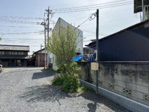 お天気がよいので あるいて近くの現場まで~ T様邸です。 仮設電気が入りました。植木部分は、防護管が付けてありますね