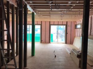 室内は、これから床を張る段取りです。綺麗に整理されています。(^^♪