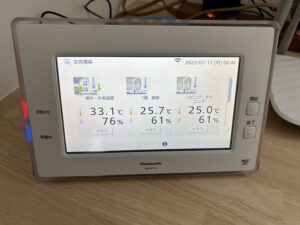 今日の朝のスキップモデルの温度です。 9時前から外気温33。1度になっていました。昨日雨が降ったので湿度76%