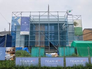 H様のこだわりのある提案の建物がようやく見えてきました。 来週いよいよ足場が解体されますね(^^♪