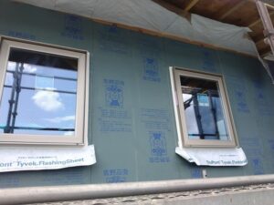 外からみるとこんな感じです。準防火ですので網入りガラスになっています。