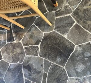 室内の鉄平石も 手ではつり~形にしているこだわりようです。 赤い部分は、全て取り除く作業もしているようです。