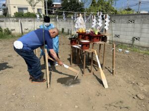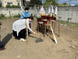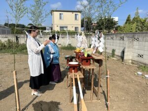 M様 地鎮祭おめでとうございます。 暑い中ありがとうございました。その後のご近所まわりも回って頂き大変感謝いたします。