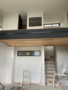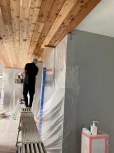 最終仕上の段取りになっています。天井塗装している写真です。