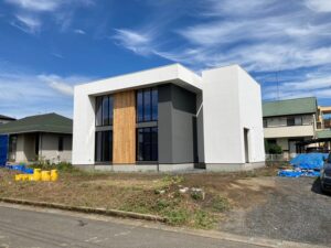 こちらの外観の家です。外壁上げでSTOをつかいましたバケツ(カラの容器です。黄色)が目立ちます。