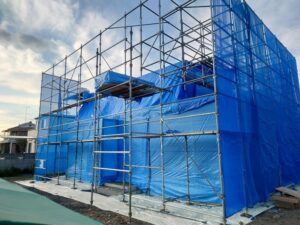シート養生バッチリです! 無事今日のお仕事完了! M様上棟おめでとうございます。(^^♪