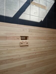 ヒノキの床の部分で穴が2個あります。指が入ります。開けてみました。