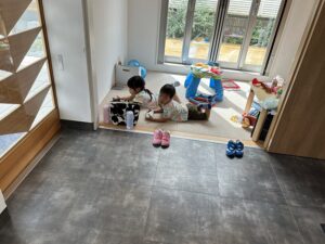 打合せ中は、兄妹で仲がよくいつも遊んでいるので助かっています。お兄ちゃんは、「そう君」という名前をやっと覚えました。